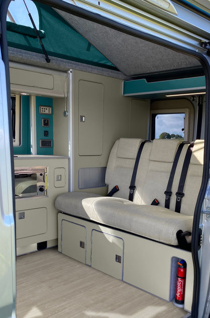 Safety and security is paramount with a fully crash tested triple seat, Isofix for your child seats, an additional passenger airbag, plus we fit all of our campervans with a Thatcham approved tracker system to ensure maximum security.