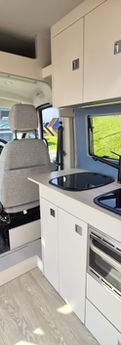 Towards the front of the ‘van, the layout opens into a spacious cooking and living area, allowing plenty of room to move around and relax. The overall design creates a campervan that is simple to use, practical in all weather conditions, and comfortable for longer trips.