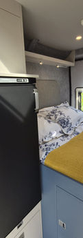At the back of the ‘van you’ll find a permanent 4ft x 6ft transverse bed, meaning there is no need to make up the bed every evening or pack it away each morning. The mattress is 10cm thick, creating a comfortable sleeping space that many owners say feels closer to a proper bedroom than a typical campervan setup.