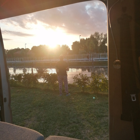 "Woke to thunder storms. Had a long lie in as we didn't have to leave the campsite till midday. Packed up and were driving off as the church struck 12. 10 hours to do 250 miles and no point in arriving too early so we didn't do tolls."