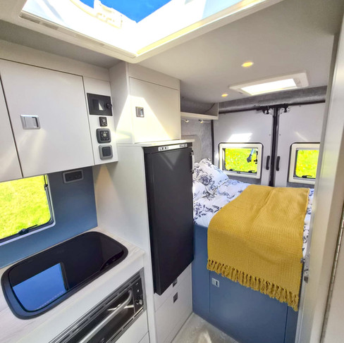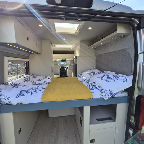 The brand new fixed rear bed MWB will be there, which has had a brilliant response since launch. It gives you a permanent bed, a proper sit-down toilet, and a layout that just feels easy to live with day to day.